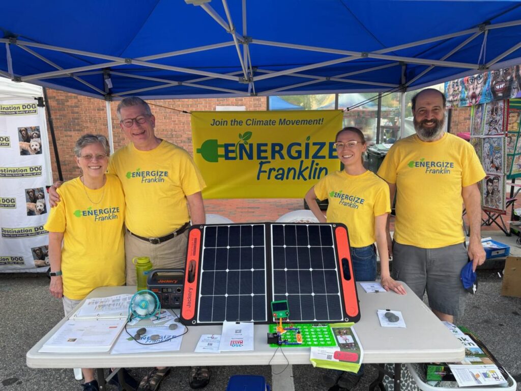 Welcome to Energize Franklin. We are an all-volunteer group focused on helping people and organizations in the Town of Franklin and surrounding areas to take practical steps at home, at work, and across their communities to address the climate emergency. Our ultimate goal is that everyone feels capable, empowered, and committed to taking action. We're here for inspiration and for information on various green actions you can take to help our planet.